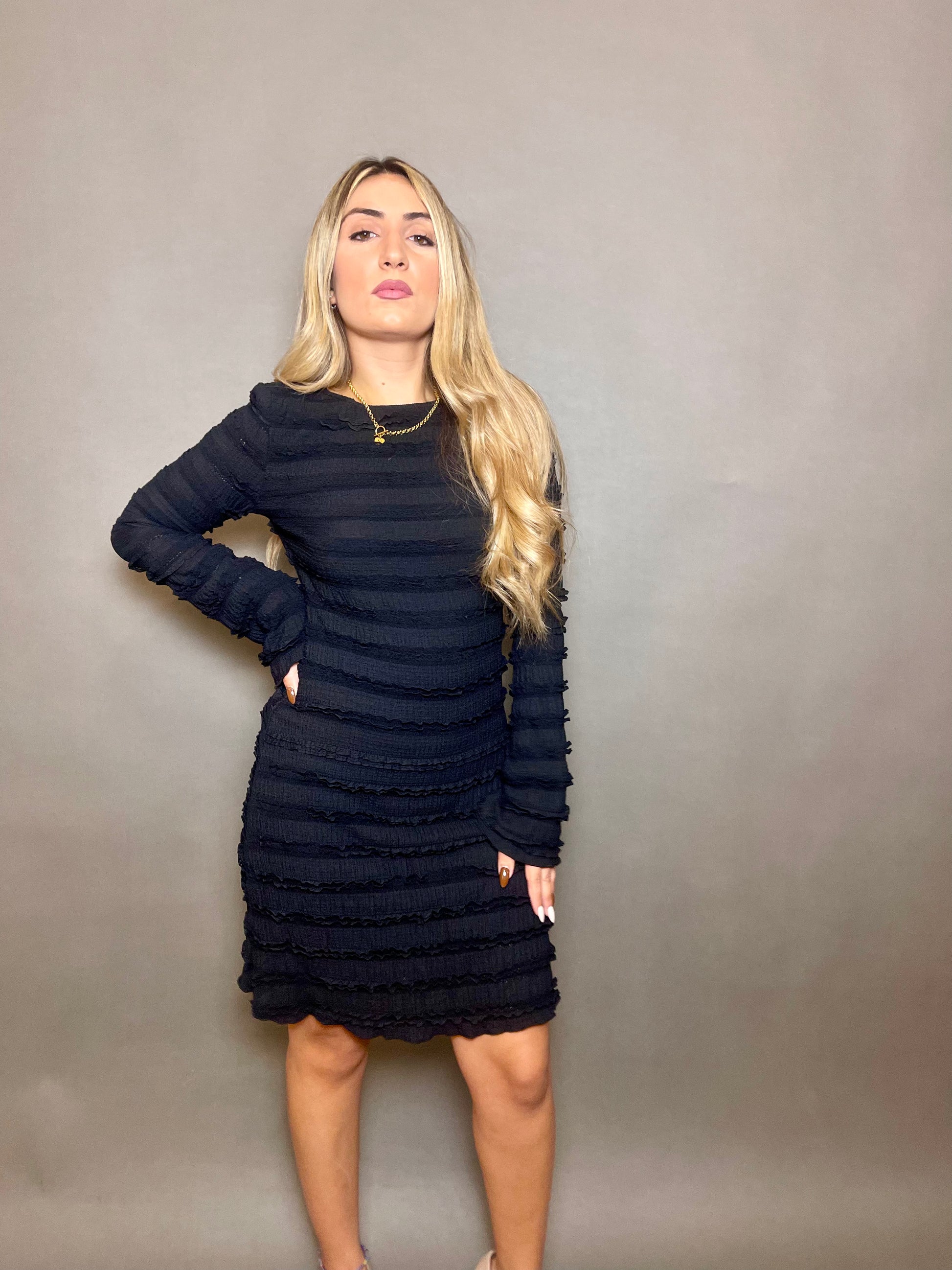 Abito raffinato con scollo sulla schiena, morbido e maniche a sbuffo.