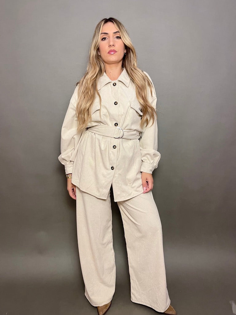 Questo coordinato in vellutto unisce eleganza e comfort, ideale per la stagione invernale. Il tessuto morbido e caldo assicura una sensazione avvolgente.