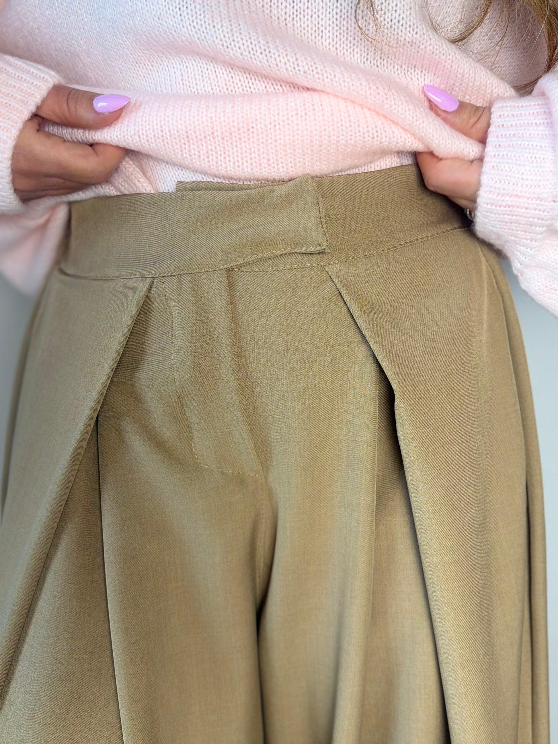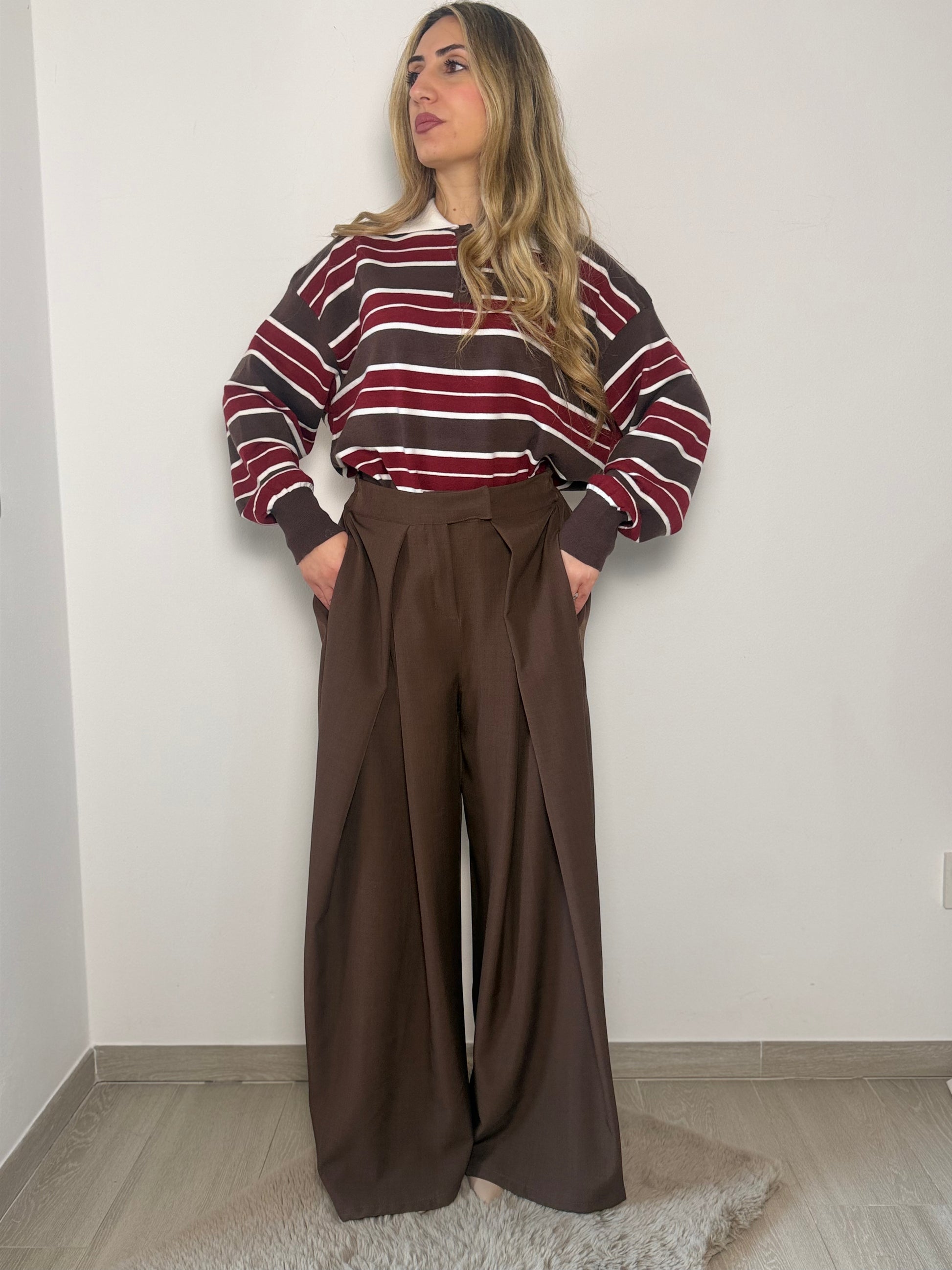 Pantalone classico e morbido, con zip e bottoni e sul restro elastico.